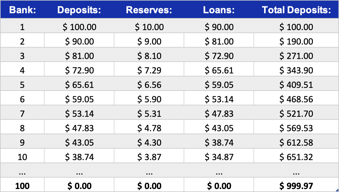 You can see that starting with just $100, there is now $1,000 in circulation! Mind-blowing, I know!