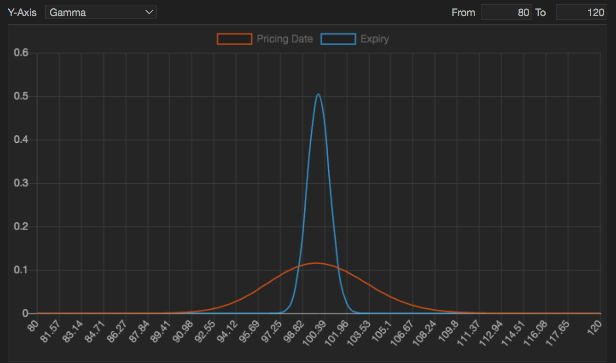 In case you want to play around with Gamma yourself, feel free to use any online Black-Scholes options calculator. Bump the underlying price and notice how the delta changes.