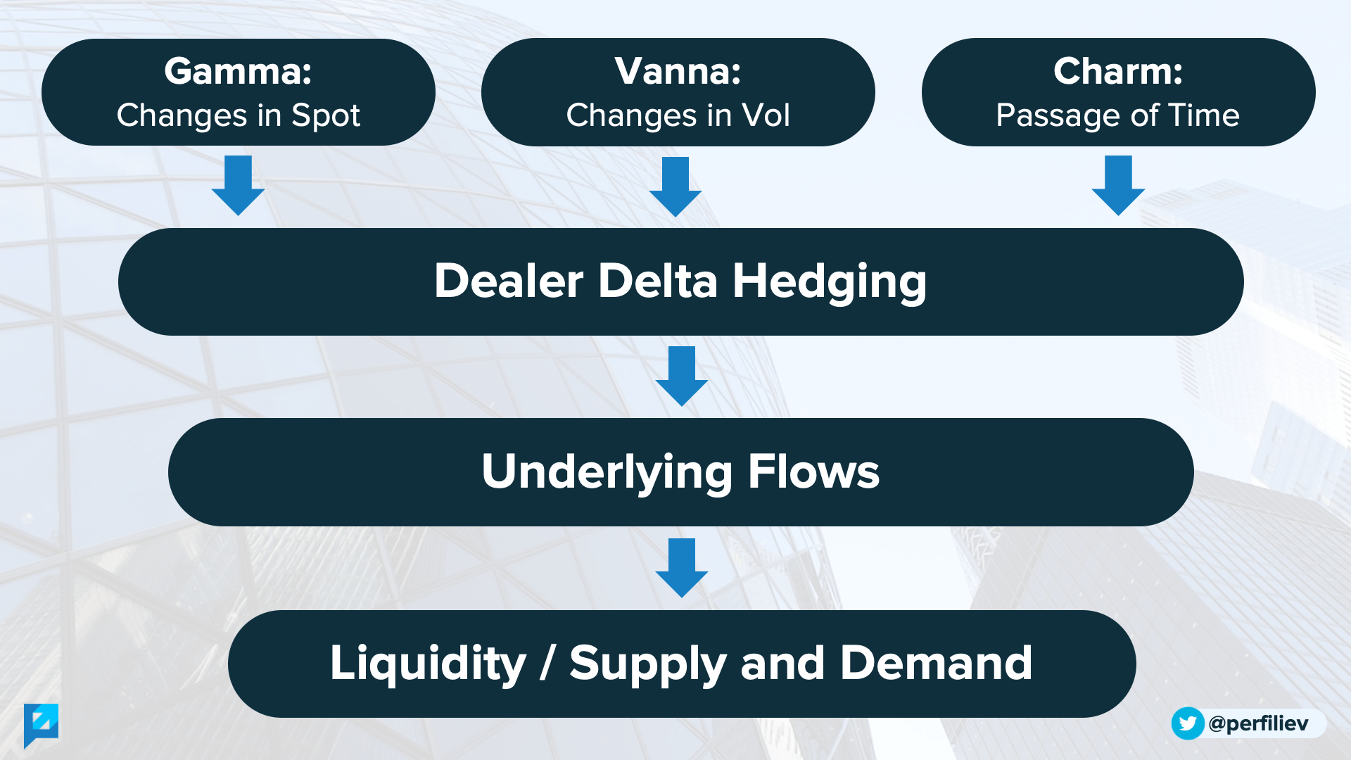 Apart from Gamma's stabilizing flows, there are also Vanna and Charm flows.