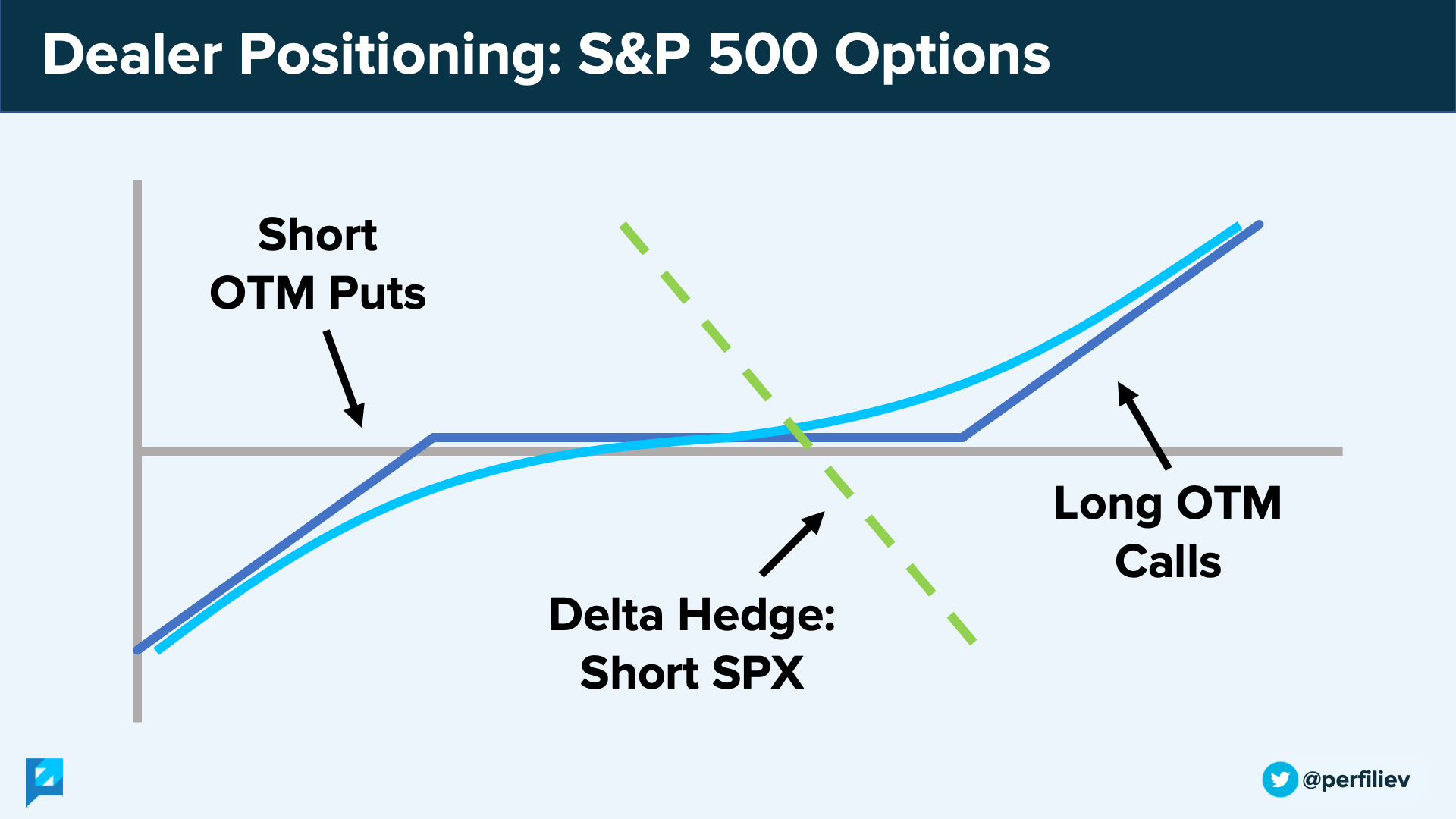 In summary, if the dealers are long gamma, they’re buying the dips and selling the rallies, which acts as a stabilizer for the index.