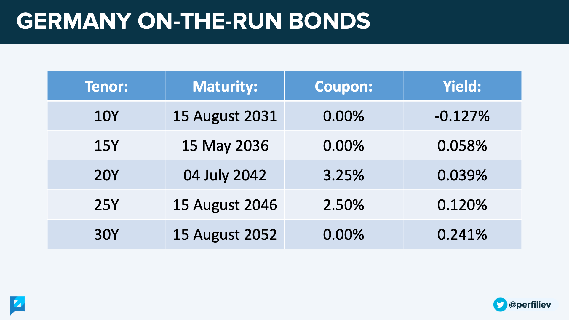 Below are the German on-the-run bonds used in the construction of the above yield curve.
