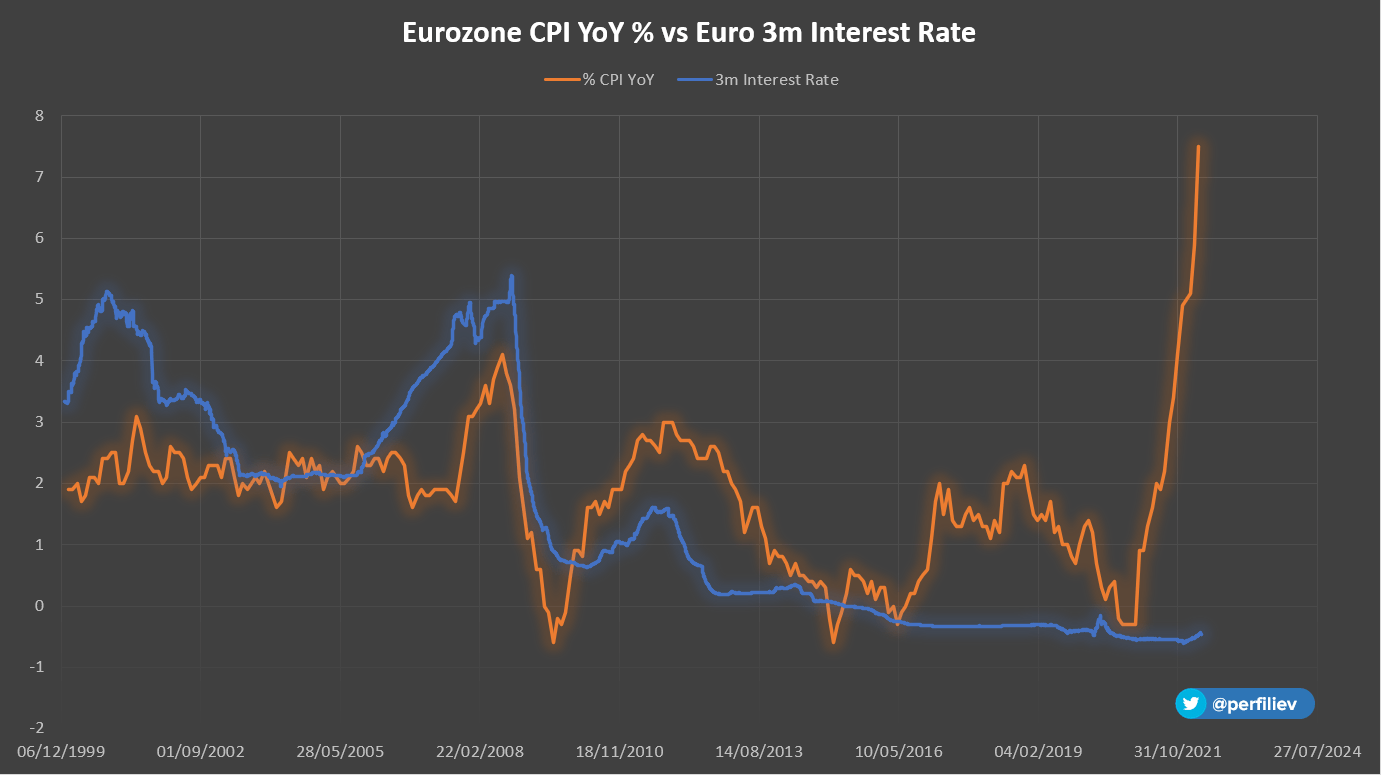 However, it's kinda getting awkward for ECB now. Eurozone inflation hit 7.5%, but ECB isn't ready to tighten and keeps its benchmark at an attractive minus 0.5%. They probably have their reasons... (ahem, Putin)