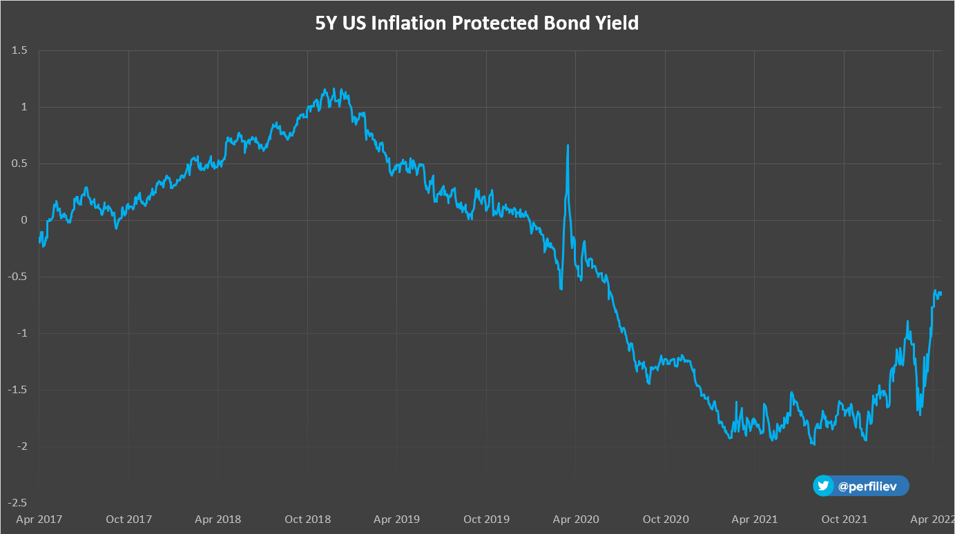 Indeed, the US 5-year real-yield of around -0.6% doesn't sound too bad now... And it might even get better as the Fed tightens and inflation subsides. The UK 5-year real yield, as proxy-measured by an inflation-protected bond, is at -3.1%.