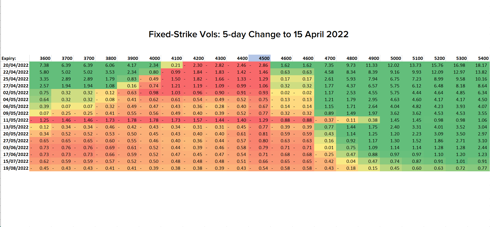 There was also no panic when SPX sold off -2.1% last week. SPX skew underrealized, meaning volatility didn't rise on the market sell-off as much as implied by the options skew. The fixed-strike put vols actually decreased, whereas fixed-strike call vols increased.